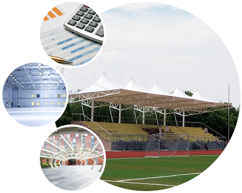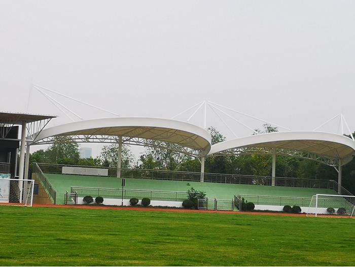 一、具體面積 鋼膜結構體育場看臺頂棚面積大小不同,價格也不一樣,面積越大的話每平方米單價越便宜。